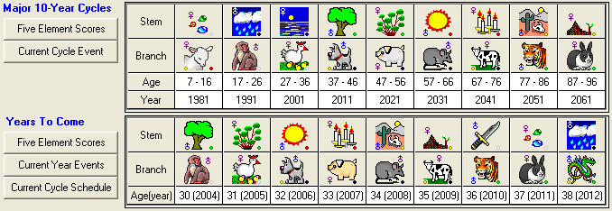 By clicking the Current Cycle Event button under Major 10-year cycles, the current 10-year major cycle event message will display.